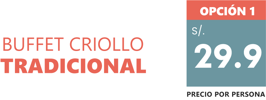 - Arroz con pollo - Arroz a la jardinera - Seco a la Norteña - Carapulcra de chancho - Olluquitos con Charqui - Ají de gallina - Cau cau de Mondongo - Fréjoles - Adobo Norteño - Escabeche de Pollo - Chanfainita - Sopa seca- Lomo saltado - Rocoto relleno - Chicharron de chancho con camote - Mondoguito a la Italiana - Patita con maní - Picante de carne de res